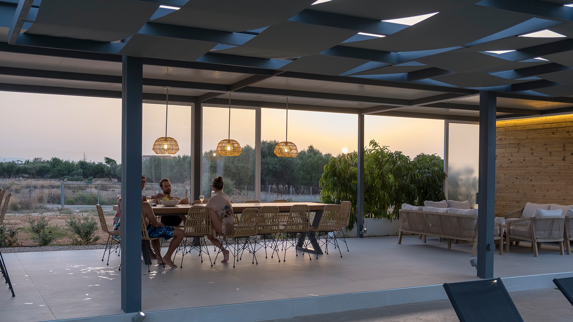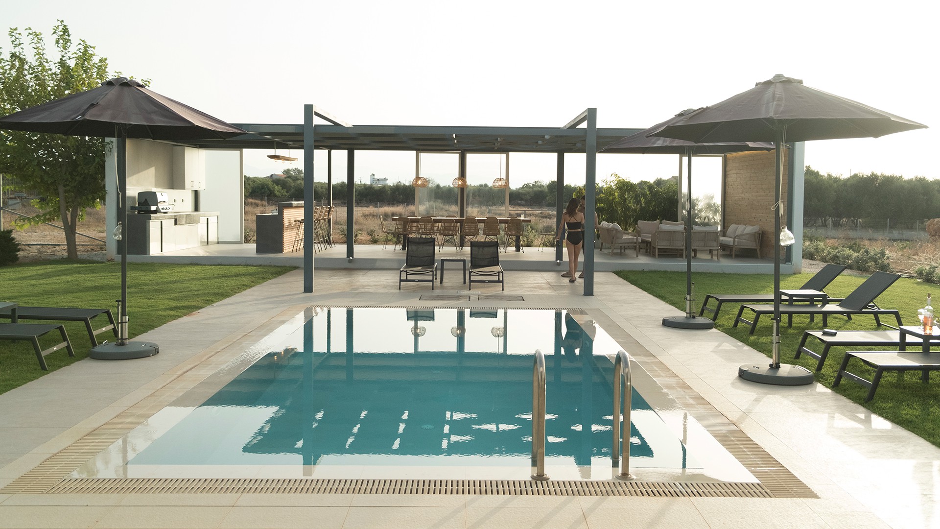 This modern villa and guest house with a private pool set in manicured grounds with a large outside kitchen and covered pergola. It is fully equipped to meet all your needs for a relaxed holiday.